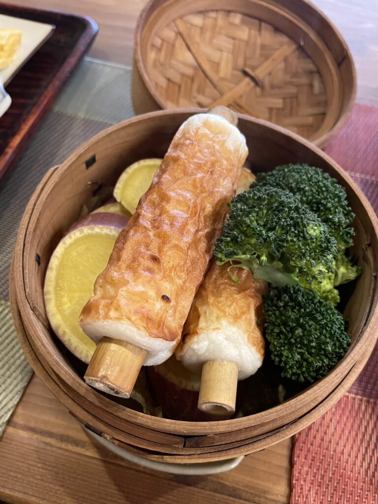 それにミニ蒸篭で蒸したちくわとお野菜!