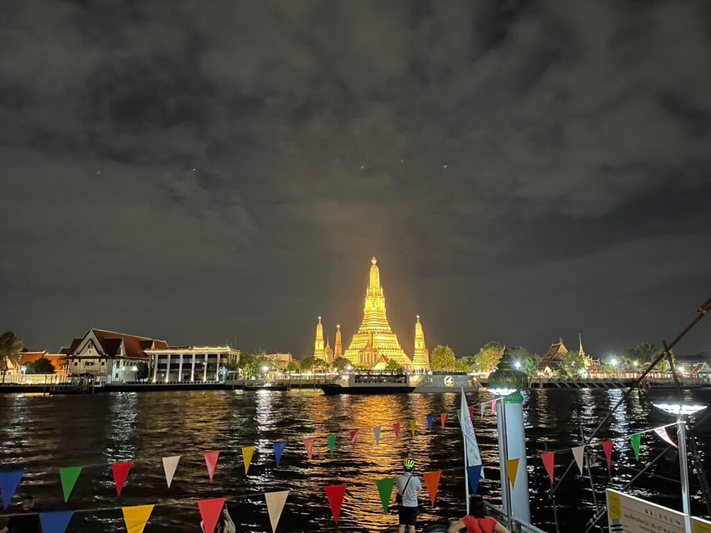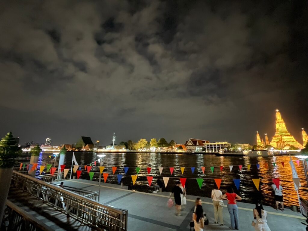 ここから15分くらい歩いたら有名なワットポー、ワットプラケオに行けるしワットアルンを川越しに観に行けるそんな立地。